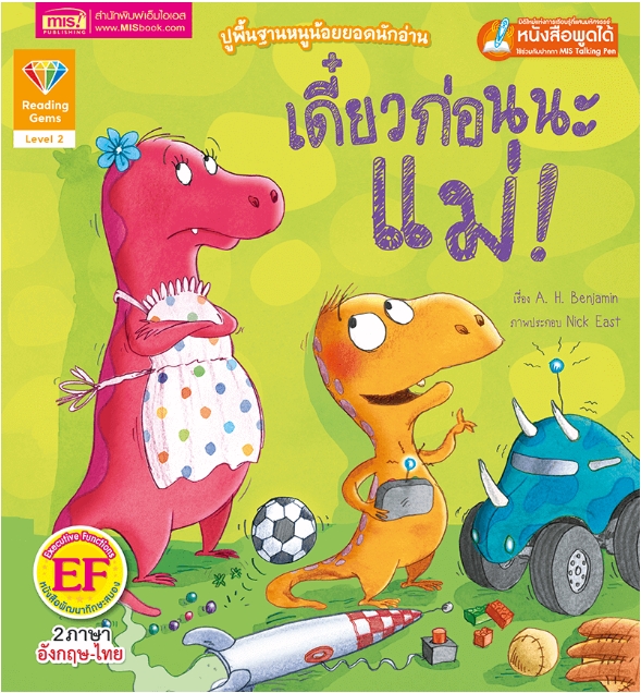 พบกับนิทานภาพ 2 ภาษา อังกฤษ-ไทย แสนสนุก ส่งเสริมพัฒนาทักษะสมอง “เดี๋ยวก่อนนะแม่!” เป็นเรื่องราวของไดโนเสาร์น้อยผู้ไม่ชอบช่วยทำอะไรในครอบครัวเลย แก่นของเรื่องคือการนึกถึงความรู้สึกของผู้อื่น